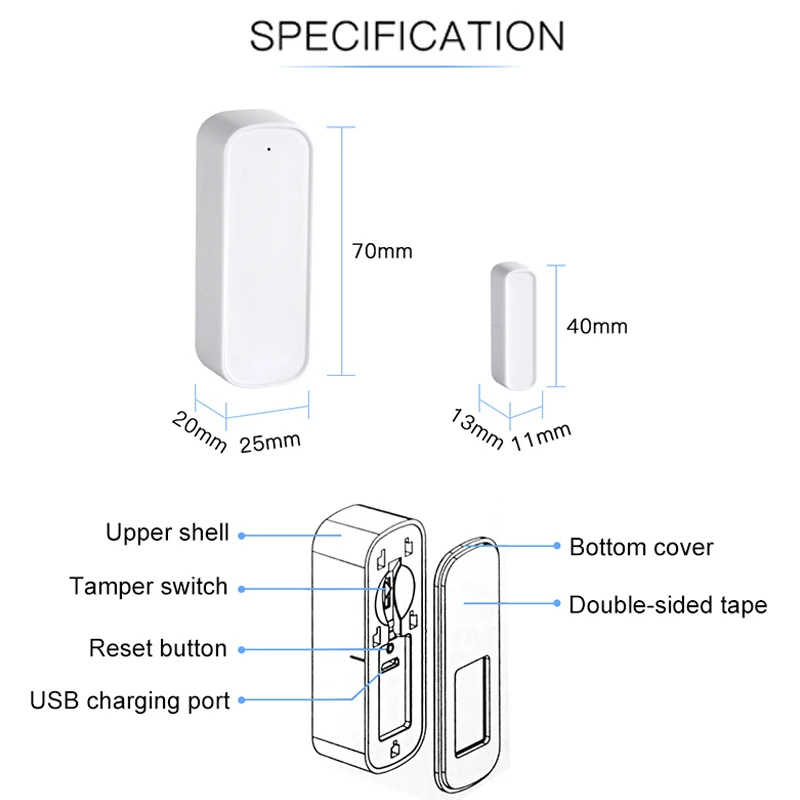 Promo Smart Door Window Sensor 2.4GHz WiFi Alarm Home Security Detector Phone Monitor HSJ-19